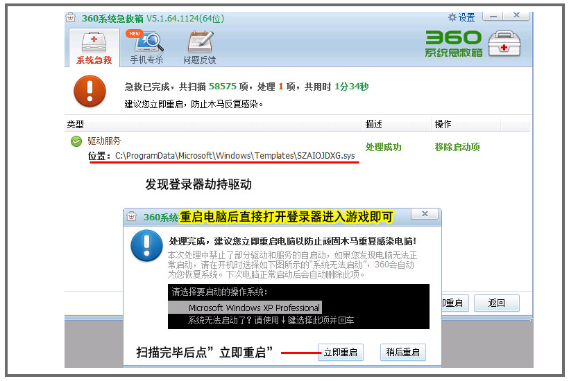 急救箱下载地址:https://www.360.cn/jijiuxiang/ (安装后一定要重启电脑)